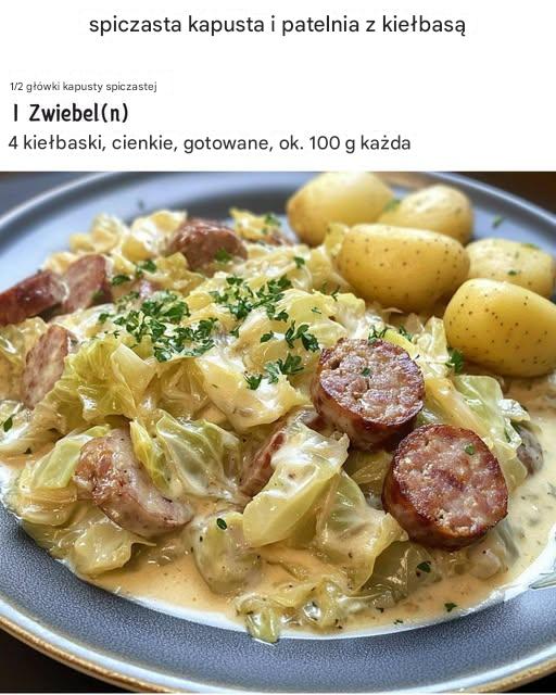 Danie z kapustą i kiełbasą to sycące, kremowe danie, które można przygotować w zaledwie 30 minut. Łagodna, szpiczasta kapusta doskonale komponuje się z pikantnymi kiełbaskami i kremowym sosem. Krótkie smażenie sprawia, że warzywa pozostają chrupiące, a kiełbasa zyskuje aromatyczny, pieczony smak. Podawane z ziemniakami danie stanowi sycący, klasyczny domowy posiłek. To rustykalne danie jest idealne na zimne pory roku i smakuje całej rodzinie!