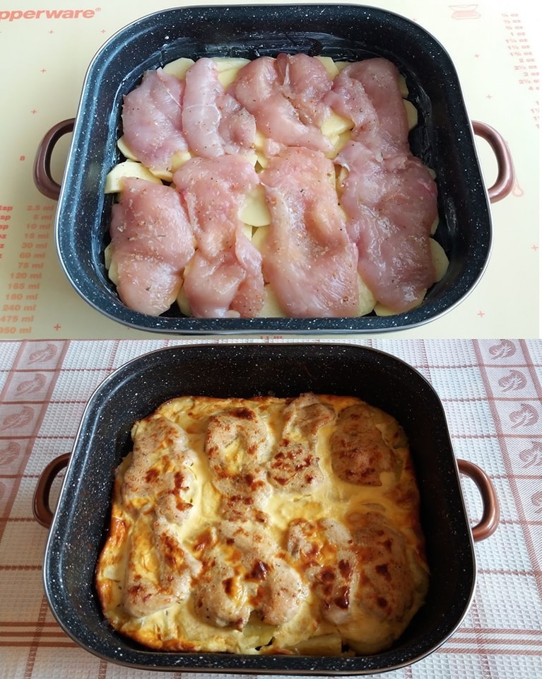 Do tego przepisu potrzebne będą: 500 gramów fileta z kurczaka, 700-800 gramów ziemniaków, suche przyprawy, sól, pieprz, 2 jajka, 200 mililitrów kwaśnej śmietany, 50 mililitrów oleju i 20 gramów masła.