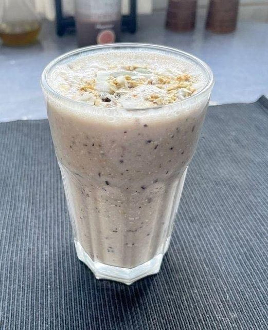 Wszystkie składniki miksujemy w blenderze do uzyskania jednolitej konsystencji. Koktajlem tym można pić codziennie, ponieważ jego składniki spełniają różne funkcje, utrzymując organizm w optymalnej kondycji.